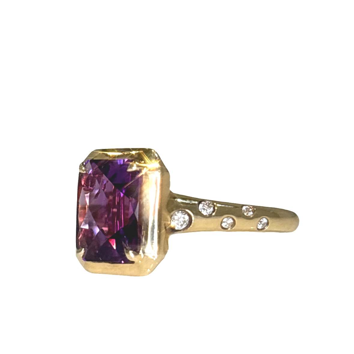 Description:14K YG Amethyst and Diamond Ring AM: 2.15 DIA: 0.11 Size 6.75