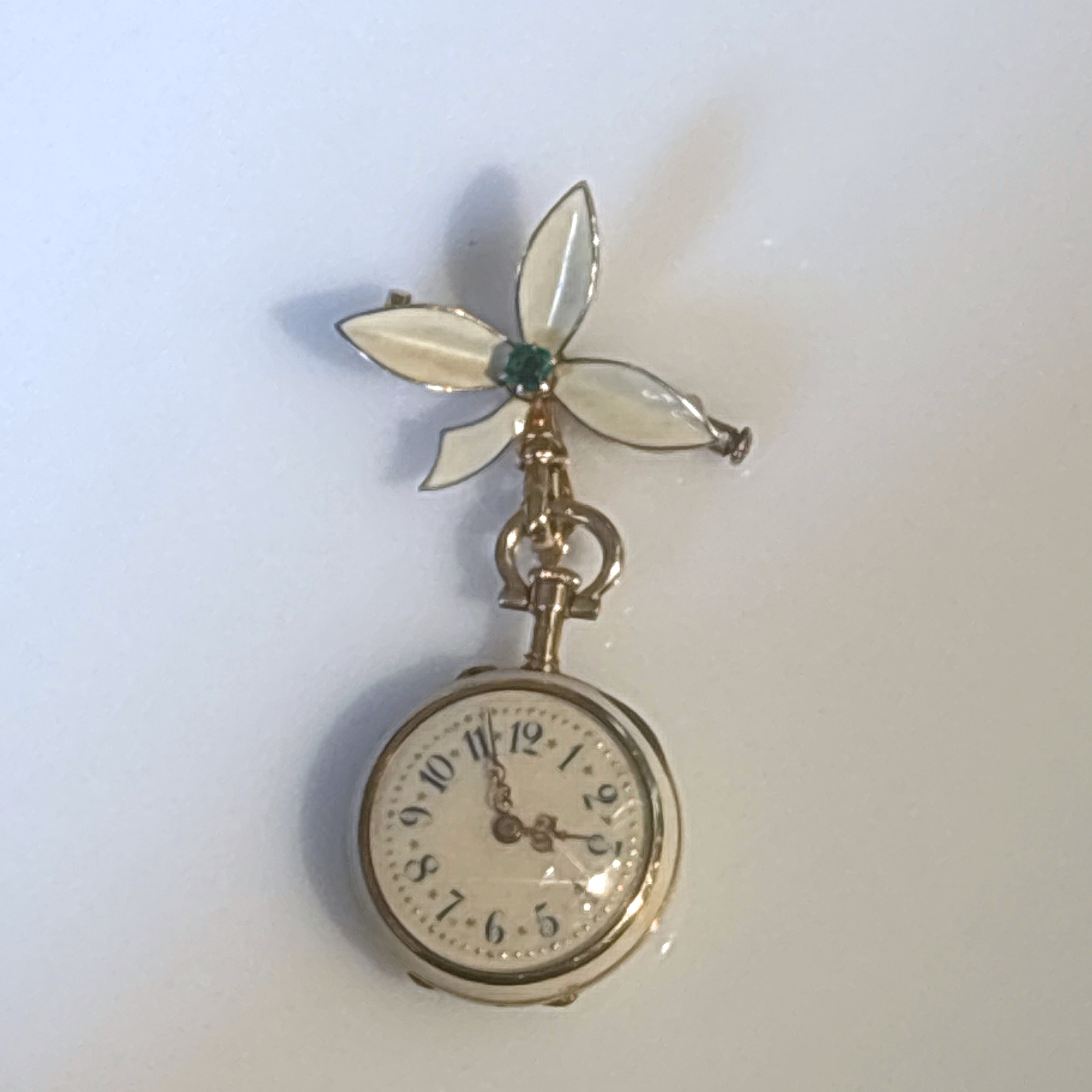 Description:Lady's Antique/Vintage French, 18K Gold White Enamel Pocket Watch w/Emerald Dragon
