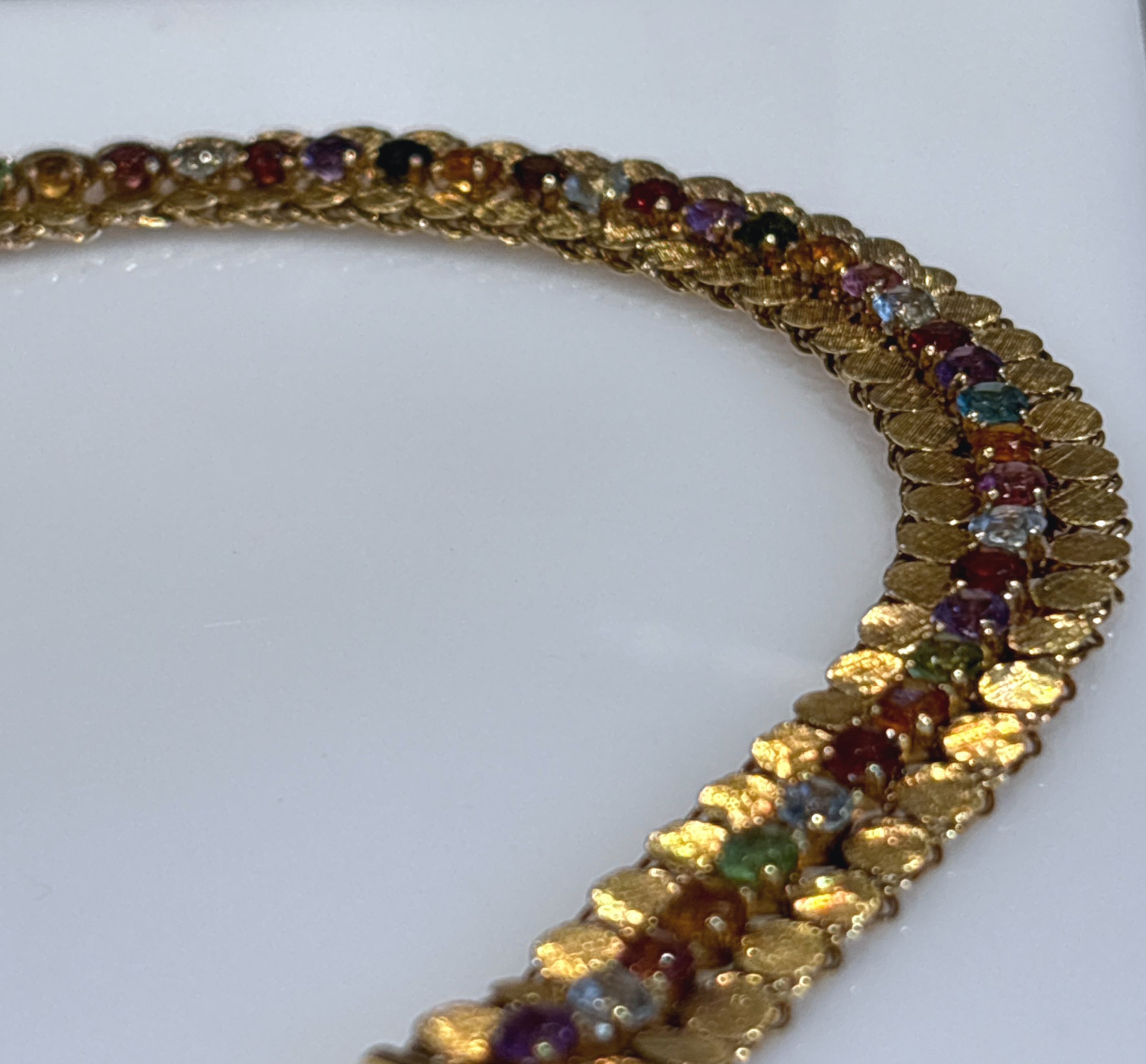 Description:Gorgeous Antique/Vintage 7" 18K Yellow Gold Mixed Gems Bracelet